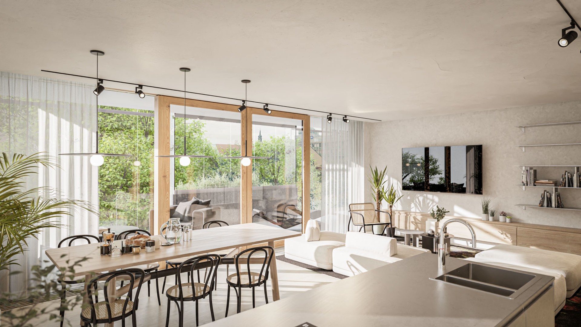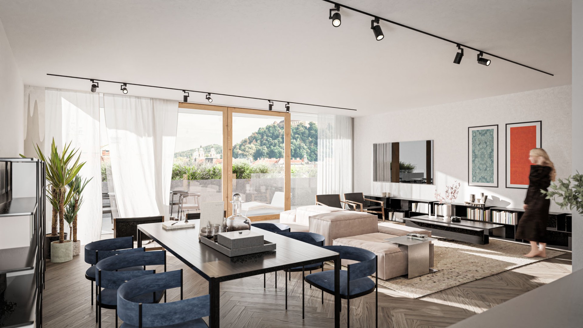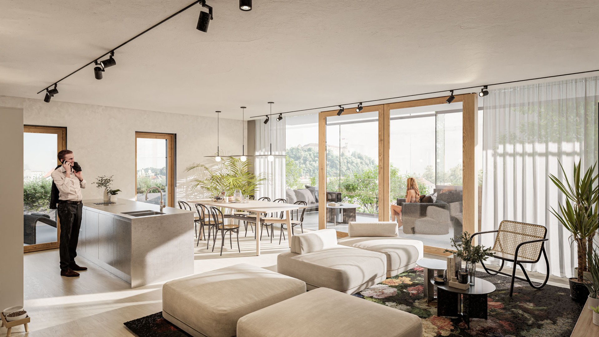 Rdeča nit koncepta je torej navezava na raščeno okolje in odprti pogledi iz Rezidence Knafelj, ki s svojo mikrolokacijo in s pasažo v pritličju tako soustvarja enega najpomembnejših osrednjih prostorov v centru mesta.